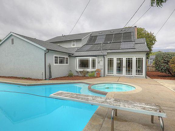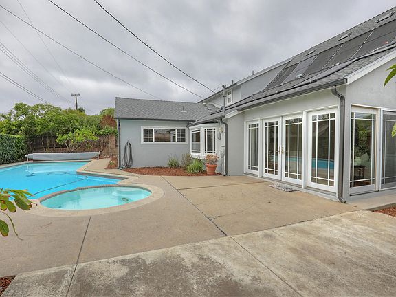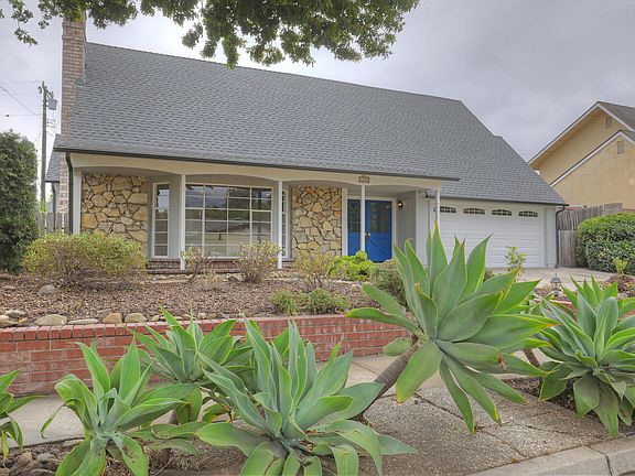 Don't miss this 5-bedroom home with a pool and attached spa in Goleta! The lower level features a primary bedroom with an ensuite bathroom, two additional bedrooms, and another full bathroom off the hallway. Upstairs features one bedroom, an additional finished room with a closet and window, and another full bathroom off the upper hallway/landing. Other sources list this home as 4 bedrooms; the 5-bedroom count entered in the MLS includes the finished upstairs room. The living room features a fireplace. The kitchen connects to dining, and flexible-use spaces. The home also includes a downstairs laundry area and an attached two-car garage. Enjoy the pool, attached spa, and patio. The home is located just a short distance from parks, schools, grocery stores, and shopping.