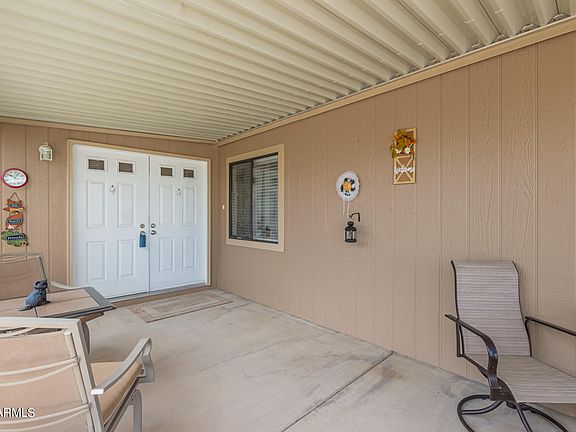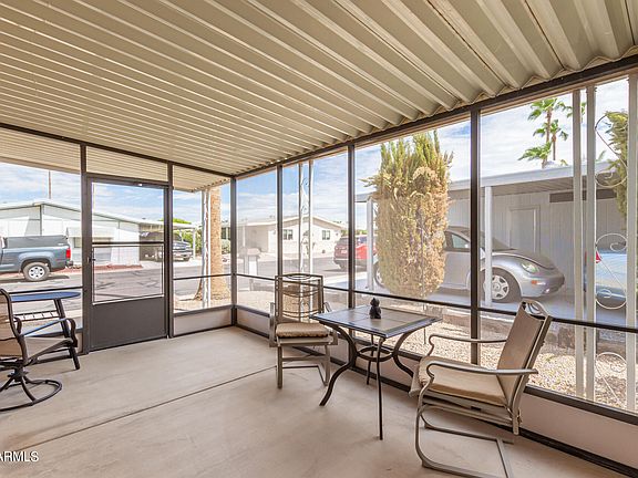 Welcome Home to this spacious previously remodeled double wide mobile home. This is the Largest home currently available in this amazing park! Open floor plan, AC and duct work previously replaced with fairly new flooring and appliances. Inside Laundry, some furniture will convey with the sale. Check out the Arizona Room, perfect for sipping your morning coffee or relaxing in the evening with your favorite beverage. Palmas Del Sol is an adult resort community and has many amenities. Make us an offer before it's too late. Financing available for approved buyers.