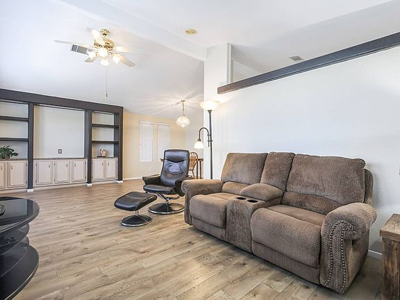 Side-by-Side Parking! Welcome to this exquisite Cavco home featuring 2 bedrooms, 2 baths, and a small office or den. This 1,708 sq. ft. residence offers luxurious laminate flooring throughout. The master bedroom boasts a handicap-accessible tiled shower and double sinks with wheelchair access. The kitchen is equipped with a large island with a cook-top, extra cabinetry, and a breakfast bar. The spacious living room is perfect for a TV room or game room. The great room seamlessly connects to the kitchen and dining room, providing an ideal space for entertaining. Recent updates include: New A/C & Heat unit (2025), New Roof (2023) new plumbing from water lines to faucets (2024). Enjoy the Arizona climate in the screened-in Arizona room. Additional features include ceiling fans throughout for extra cooling, dual pane windows, and tape and textured walls. The carport awning was replaced in 2023. The storage shed includes a washer and dryer and a golf cart garage door. This home offers 2-car side-by-side parking, providing ample space for your vehicles. Don't miss out on this incredible opportunity to own a stunning home in a desirable location! Experience Thesman Communities Lifestyle, we are an active 55 plus community where luxury meets affordability. For over 40 years we have set the standard with world class amenities and year-round activities. Our community is a 24-hour gated community, with a beautiful 12,000 square foot clubhouse including ballroom, fireside lounge, library with computers and individual rooms for cards, billiards, arts & crafts and fitness center. Enjoy outdoor amenities heated pool & spa with cabanas, BBQ area, pet park, sport courts for pickleball, horseshoes and shuffleboard. Our activities director assures a full calendar of social and recreation events. Our shuttle bus makes it easy and convenient to attend sporting and special events, plus local shopping. Whether you want to relax or stay active our vibrant communities offer everything you need to enjoy life to the fullest. Discover Thesman Communities and start living the Thesman Lifestyle today!