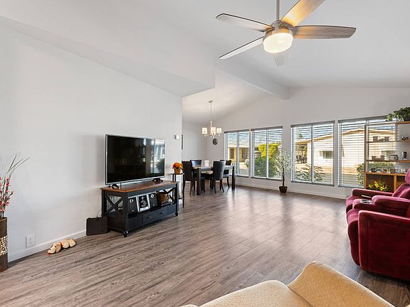 Exquisitely Remodeled Turnkey Treasure! Step into this beautifully updated 1,344 sq. ft. home, where every detail has been meticulously attended to. Recent upgrades include a new roof (2022), A/C (2019), water heater (2018), and dual-pane windows for energy efficiency. The exterior shines with a brand-new carport awning, while the interior greets you with freshly tape-and-textured painted walls and stunning hard surface flooring throughout.The kitchen is a culinary delight, featuring quartz countertops, stainless steel appliances, sleek cabinetry, and a coffee/wine bar complete with a beverage fridge. The primary bedroom offers a spa-like retreat with a new vanity, a walk-in shower, and an adjacent laundry room with a washer and dryer. The guest bathroom is equally modern, boasting a stylish vanity and a tub/shower combination.Every room is thoughtfully enhanced with new light fixtures and ceiling fans for added comfort. Outside, enjoy the tranquil landscaping and a spacious storage shed with charming French doors.This turnkey gem is ready to welcome you home with style, comfort, and effortless elegance!Experience Thesman Communities Lifestyle, we are an active 55 plus community where luxury meets affordability. For over 40 years we have set the standard with world class amenities and year-round activities. Our community is a 24-hour gated community, with a beautiful 12,000 square foot clubhouse including ballroom, fireside lounge, library with computers and individual rooms for cards, billiards, arts & crafts and fitness center. Enjoy outdoor amenities heated pool & spa with cabanas, BBQ area, pet park, sport courts for pickleball, horseshoes and shuffleboard. Our activities director assures a full calendar of social and recreation events. Our shuttle bus makes it easy and convenient to attend sporting and special events, plus local shopping. Whether you want to relax or stay active our vibrant communities offer everything you need to enjoy life to the fullest. Discover Thesman Communities and start living the Thesman Lifestyle today!