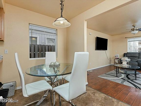 This inviting 2-bed, 1.5-bath townhome blends style & function with a bright, open-concept design. Natural light fills the living and dining areas, while the spacious kitchen offers effortless flow. The primary suite features a generous walk-in closet. A private fenced backyard adds outdoor space, & two dedicated parking spots for convenience. Centrally located near JBER, hospitals & universities