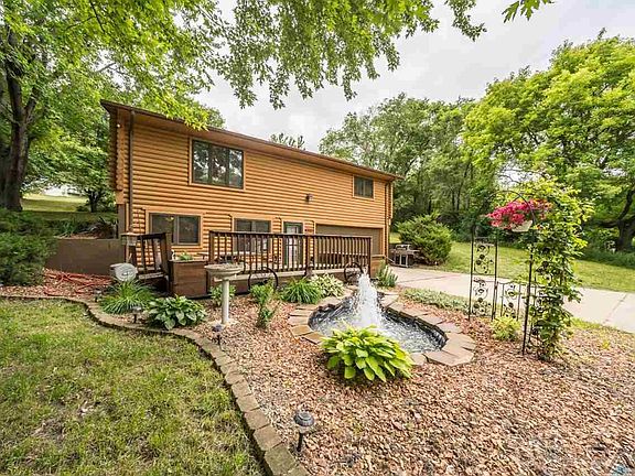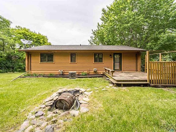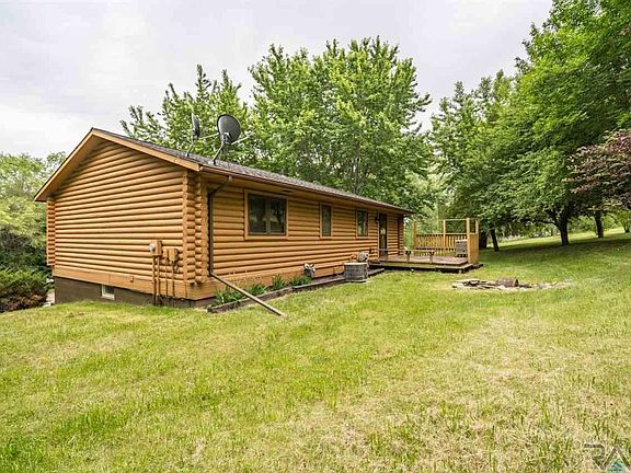 Wonderful log home nestled on a hillside close to Sioux Falls. This 1 acre property Features: 3 bedrooms, plus an office area, 2 bathrooms, custom kitchen, main floor laundry, custom wood blinds, large living room, nice dining room, 2nd family room, 2 decks, 2 Storage Sheds & mature landscaping with a water fountain. This home is located on a county road that is well maintained, out of the wind & protected by mature trees. Enjoy the views on this very quiet location just 1 house outside of city limits with room to build a large shop. Must see!