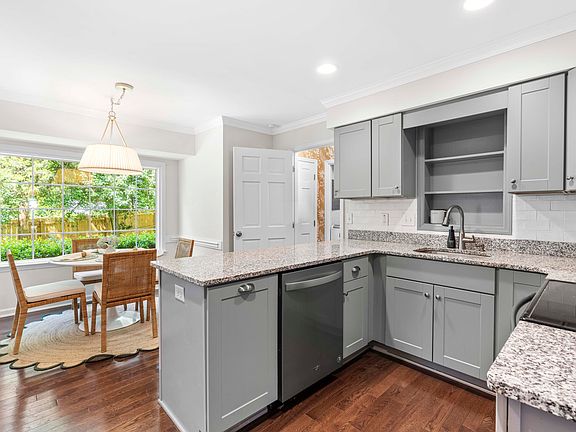 Step inside this bright, welcoming North Raleigh home ready for immediate move-in! First floor features a spacious main living area with hardwood floors, masonry gas log fireplace, and updated kitchen with granite countertops. LARGE picture window in the breakfast nook highlights the meticulously maintained yard and mature landscaping. Upstairs you will find a highly functional primary bedroom with walk-in closet, additional sitting space, and private bathroom. Two additional bedrooms feature ample wardrobe storage. Prime location minutes from North Hills and walking distance to restaurants and shopping. PLUS new light fixtures and fresh paint throughout, 2021 HVAC, 2022 wooden privacy fence, 2023 windows & sliding back door with screen, and 2024 deck.