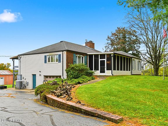 Welcome to 6209 Osage Road, an extraordinary, thoughtfully designed home perfectly situated on 4.72 serene acres in sought-after Oldham County. This spacious residence seamlessly blends classic charm with practical living, offering ample space for relaxation, entertaining, hobbies, and a rural lifestyle. Enter through the spacious enclosed front porch with ceiling fan. The main level features a welcoming living room, a formal dining room framed by arched entryways, and a bright, eat-in kitchen with pantry, slide-out shelving, full appliance package, and bay-window dining area. The inviting family room showcases a handsome brick fireplace with a buck stove insert, beamed ceiling, and access to a butler's pantry/mudroom that opens to the back deck. This level also includes a guest full bath, an office/bedroom, a second bedroom, and a spacious primary suite with separate deck access, walk-in closet with custom built-ins, and a private bath with walk-in shower. The walkout lower level offers a family room with access to the covered patio, craft or hobby room, laundry room with additional cabinetry, full bath, bedroom, and generous storage space. Additional highlights include a deep attached 1-car garage with built-in storage and workshop area, as well as a carport and large detached garage/barn/workshop, ideal for hobbies or extra storage. There is even a separate barn perfect for storing all your farm equipment or animals. For the buyer's ease, Kubota diesel tractor with mower and his Cub Cadet zero turn mower to remain. Conveniently located near top-rated Oldham County schools, shopping, and recreation, don't miss this true gem and schedule your showing today!.
