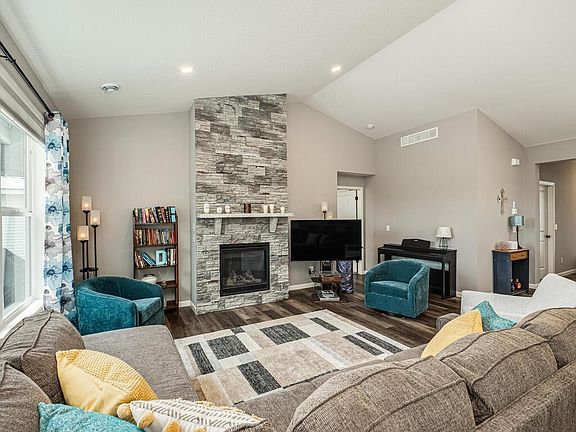 Welcome home to this wonderful 3BR, 2BA detached one level living townhome in the Harvest Run Neighborhood. This Villa is open and spacious with tons of natural lighting, vaulted ceilings, stainless steel appl, large kitchen island w/Quartz counters, and a spacious owners suite with private 3/4 bath and walk in closet. Wonderful sunrise from the front porch and evening sunsets on the back patio overlooking wetland views and plenty of wildlife. This home is sure to please with no stairs and RARE heated garage. Low HOA fee that covers Lawn care, snow removal, & sanitation. Close to freeways, dining, shopping and more!