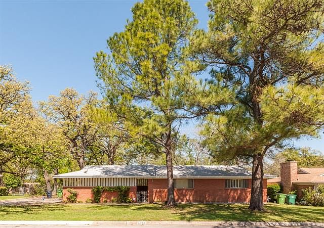 Rare find in established community in Fort Worth! Mid-century modern architectural style with a HUGE backyard that offers a green house, outdoor storage building currently being used as an office and a work-out room! Large, open floor plan has lots of living space with tons of cabinets in the kitchen! Living room has expansive views of the backyard through the wall of sliding glass doors.