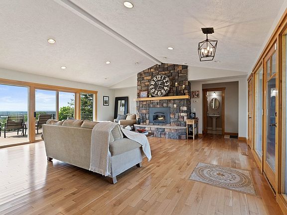 Location with a view. Enjoy the sunset every night. Rare opportunity to live on quiet street by Moran Prairie Elementary. Recently renovated view home with a two-car attached garage and 3 car detached garage with an ADU. This garage is heated and would be perfect for a golf simulator. The kitchen has high end Bosch appliances and Wolf range. Wait until you see the main suite. It has a fireplace and stunning remodeled bathroom. The shower holds 6 heads and is ready to wake you up in the morning. You'll find laundry hook ups in the walk-in closet and in the downstairs laundry room. The home has 4 bedrooms, 2 1/2 baths and 3 fireplaces. There is also an ADU with approximately 300 sq foot with a loft attached in the upper garage. It has a 3/4 bath, kitchen appliances, cable tv hook ups and direct line to internet. Perfect place for an office, rental, mother-in-law set up or teen-age bedroom. Upper acre has a transformer which creates endless possibilities. Room for a shop, sports court or pool.