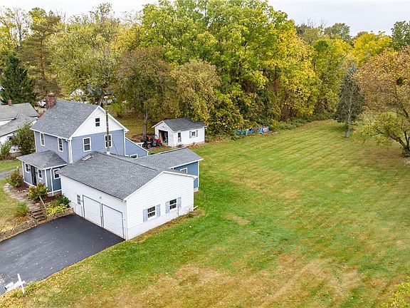 Sharp and well-kept Livonia Farmhouse sits on 3.9 scenic acres and offers 3 bedrooms, 1 bathroom and 1,480 square feet. Featuring a spacious first floor w/ large living room, sizable first floor bedroom, eat-in kitchen w/ plenty of counter and cabinet space, updated bathroom and laundry/mudroom w/ a sliding glass door that leads to the back patio. Enjoy the first-floor bonus rooms that could be used as office space, a 4th bedroom, playroom, storage and more. Two bedrooms upstairs including the roomy main bedroom, large, attached two-car garage and a 2nd detached garage which would make a great workshop, storage or place to park your toys. The partially wooded 3.9 acres is mostly cleared and offers a good-sized patio, small fenced-in play area, swing, shed and room to explore. Updated woodburning stove (2017), Furnace (2017) and H20 Tank (2018). Close to Conesus Lake, 390, Livonia Schools, restaurants, shopping, groceries and additional amenities. Delayed negotiations until 10/17/2023 at 3pm.
