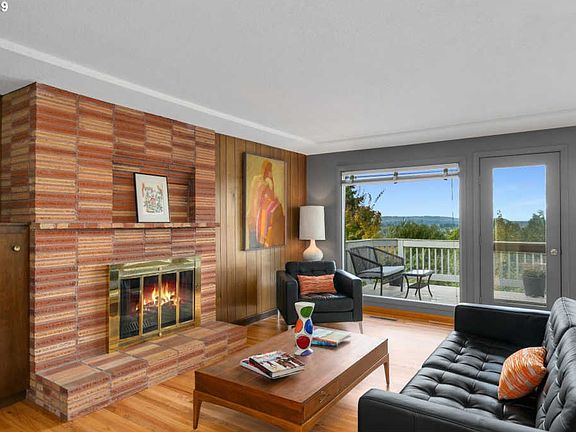 OPEN HOUSES 12/21 1PM-3PM & 12/22 10AM-12PM! Mid century modern in Vermont Hills w/stunning westerly sunset views. Restored architectural integrity w/continuity of space, wood, windows, & light. Fabulously vintage kitchen w/modern amenities: refinished cabinets, gourmet gas range, & walk-in pantry. Piece de resistance: vaulted/beamed bonus room featuring shuffleboard inlay, bar, & fireplace. Newly refinished wood floors, new roof & exterior paint. [Home Energy Score = 2. HES Report at https://rpt.greenbuildingregistry.com/hes/OR10135361]