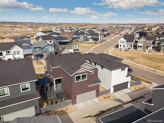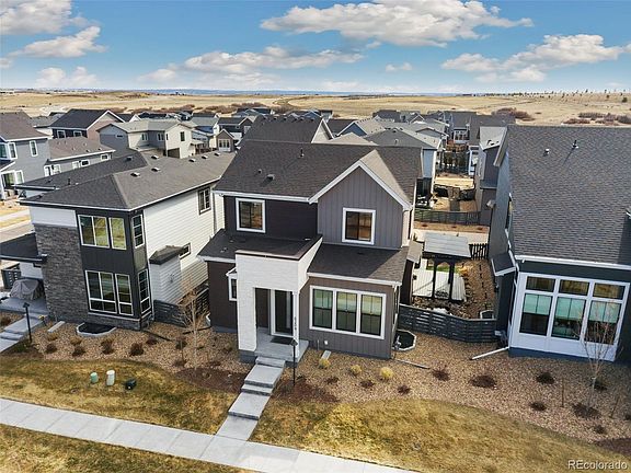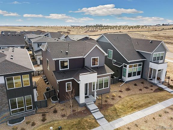 Welcome to this immaculate 4-bedroom, 4-bathroom home with a loft and tranquil outdoor retreat, nestled in the highly sought-after Canyons neighborhood of Castle Pines. The bright and airy main floor features an open-concept living and dining area, complete with a cozy stacked-stone fireplace and automatic window treatments for effortless ambiance. The kitchen boasts stainless steel appliances, quartz countertops, a spacious island, and under-cabinet lighting with gas range. Upstairs, the primary suite offers a large walk-in closet and an en-suite bathroom with a double vanity. Two additional bedrooms with northwesterly views, a full bathroom with ample counter space, a versatile loft space, and a convenient laundry room complete the upper level. The finished basement expands your living space with 9ft ceilings throughout, a generously sized recreation area, a fourth bedroom, and a stylish ¾ bathroom with a walk-in shower. Step outside to your private side-yard oasis, where a custom pergola provides the perfect setting for entertaining or unwinding amidst the peaceful sounds of the feature pond. Additional highlights include smart home technology throughout, a radon mitigation system, and extra lofted storage in the garage and mechanical room. The entrance from the garage has a convenient setup - complete with sitting bench and cubbies for shoe organization, coat hooks, and upper cabinets for storage. Located in a low-maintenance community, this home benefits from HOA-provided snow removal and front yard landscaping. Enjoy the exceptional amenities of The Canyons, including The Exchange coffee house, Canyon House restaurant, fitness center, community pool, parks, trails, playgrounds, and a turf field. Ideally situated near the recreation opportunities of Hess Reservoir and Incline, this home also offers easy access to Castle Rock’s shopping, dining, and the Denver metro area.