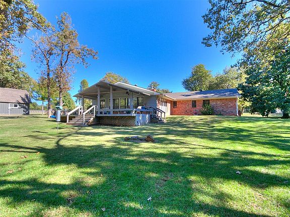 Welcome to YOUR SHANGRI-LA, right in your own picturesque back yard! Relax on on the deck and enjoy nature with the sound of water trickling from the fountain in the pond on this amazing 5 acre(MOL) property. Not only are you surrounded by beautiful trees and foliage, there is the "always desirable" workshop, a barn, and RV Shed w/large storage room. An additional water feature/waterfall alongside the drive welcomes your arrival. The home has large open living-dining area with two sets of bay windows and another living space across the back of the house with a wall of windows that allows for more stunning views. All of this on a quiet street in a secluded neighborhood conveniently near everything that North Edmond has to offer. Quick access to 1-35 will get you anywhere you are obliged to travel. This is a must see property to truly appreciate the magnificence!