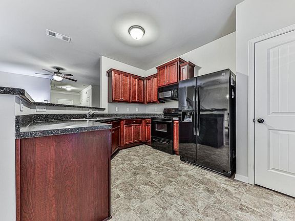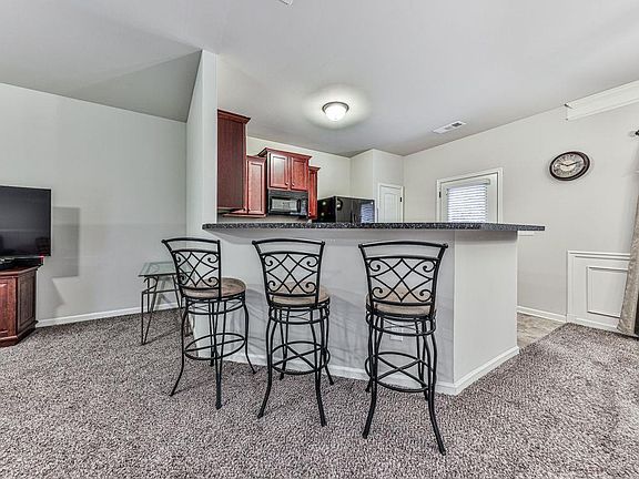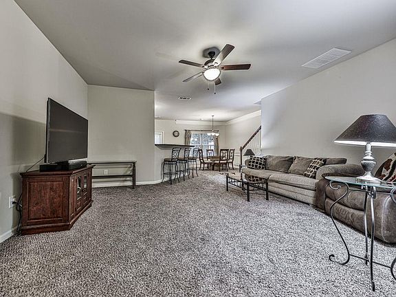 Open concept living space on main level. Large master bedroom upstairs. Double sinks & spacious master closet in en-suite master bath. Laundry upstairs. 1 car garage. No neighbors behind, just trees Trash included and lawncare.
