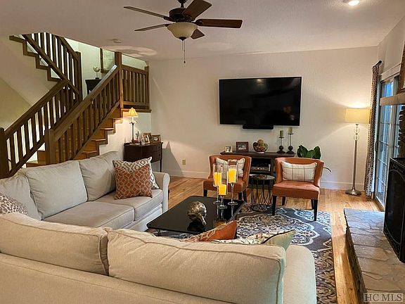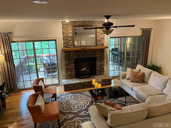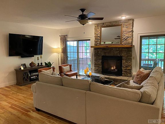 Beautifully updated riverfront condo within walking distance to the Sapphire Valley Master Association amenities. Relax on the covered porch enjoying the sights and sounds of the Horsepasture River. The main level features a fully upgraded kitchen, dining area, and Great Room with stacked stone fireplace. The upper levels feature 4 bedrooms suites, each with their own full bath. The lower level features a generous sized double garage & storage space. Additional features include 1 gigabit broadband service, a smart thermostat, and a whole house self-draining dehumidifier. Sapphire Valley amenities include 2 outdoor pools, one indoor pool, saunas, hot tubs, weight room, game room, video rentals, running track, kids playground, Horsepasture River picnic grounds, board games, ski slope, snow tubing and zip-line areas, tennis center and golf course with driving range, Fairfield Lake access to swim, canoe, paddleboat, picnic and much more. Great rental potential!