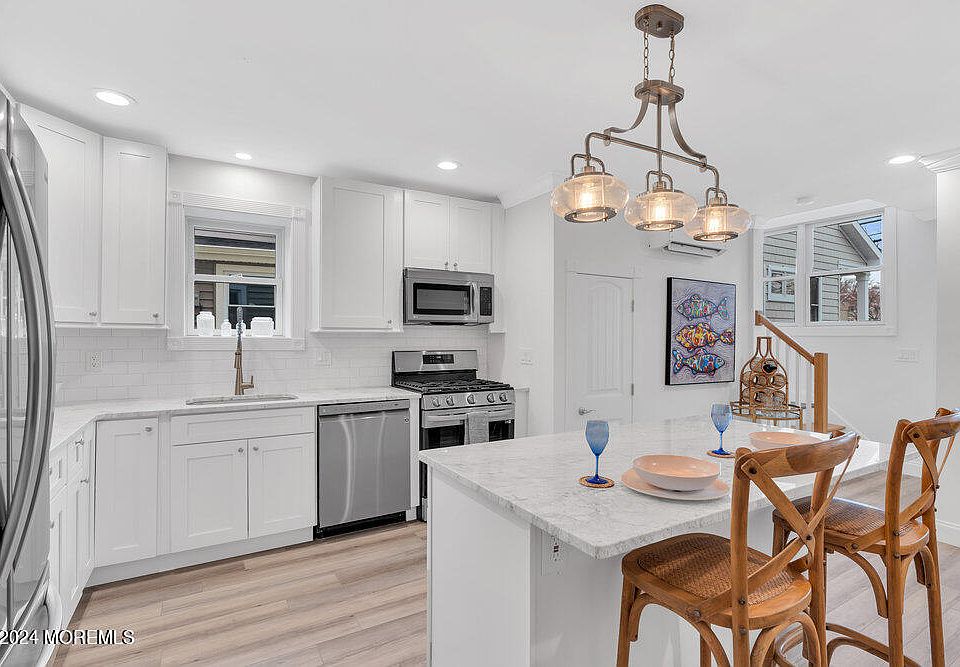 Great beach house opportunity! Enjoy the shore lifestyle in this 3 Bedroom 2.5 Bath newly renovated home featuring a front patio, private dedicated off-street parking space, open-concept kitchen /dining /living, beautiful kitchen w/ stainless steel appliances and more. You will love the location being close to downtowns, new lake path, and Third Ave Spring Lake. Low maintenance home for more time to enjoy at the beach with friends and family! The primary bed w/ vaulted ceiling features an ensuite bathroom w/ double sink. Other features include; skylight, split system AC for comfort and individual control, 1st level laundry, and more. This turn-key detached home condo is ready for you to enjoy a great summer season! Make it happen and start living the lifestyle you deserve!