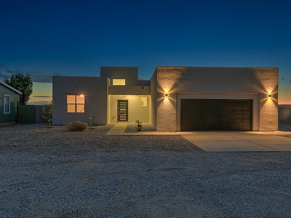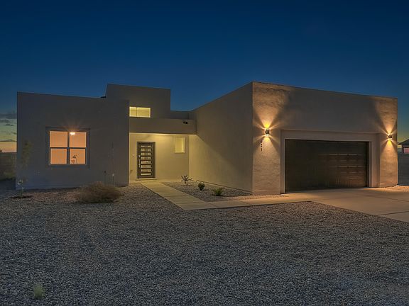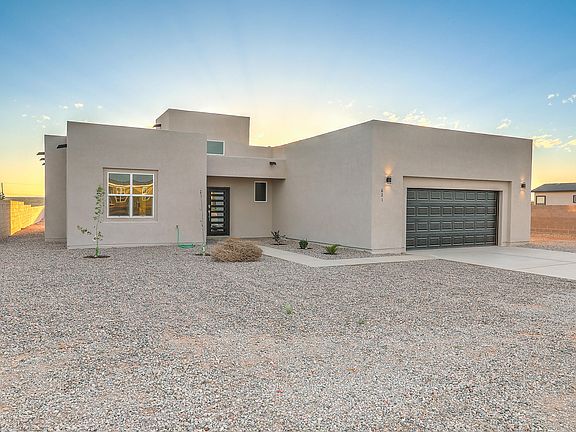 Modern, clean lines in this custom home! Situated on a half acre w/ walled backyard access, this home boasts an open floor plan with high ceilings. Kitchen is appointed with stainelss appliances and unique granite countertops. Living and dining have picture frame windows to take in the amazing sunsets. Split bedroom design allows for privacy. Complete with large laundry, TPO roof, and oversized garage! Schedule today!