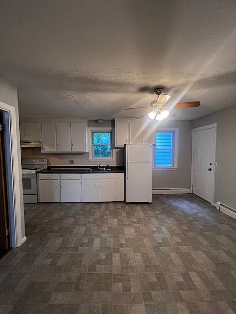 - Exterior features: Heating system: Baseboard, No Utilities included in rent, up to med size pet