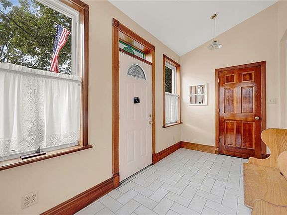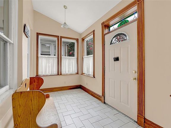 One family semi-detached home with a one car garage enter into a enclosed porch with a closet. Great sun room, there is a large living room with parquet floors and a formal dining room with a stained glass window. The modern kitchen has wood cabinets, granite counter tops, sliding door with palladian top. The kitchen has a spacious island and stainless steel appliances. Sink has an instant hot water, faucet and there is a built-in air conditioner. The second level has a 3 bedrooms and a bath. The back bedroom has been renovated with new hardwood flooring and built-in cabinetry for clothing and storage. The main bedroom is a very nice size. There is a full basement currently used as a home office, it also has a new 3/4 bath and well planned laundry room. The heating system has hot water tank in excellent condition.