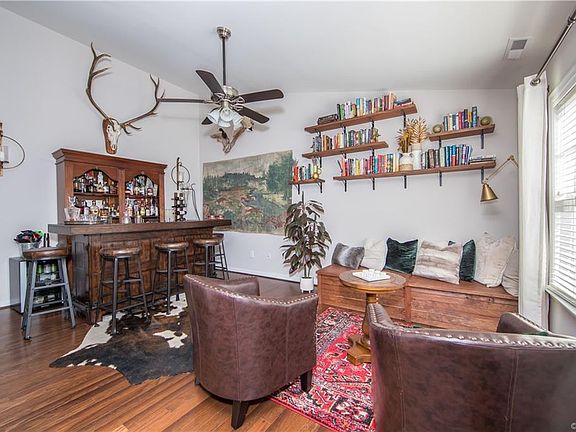 This charming END UNIT town home in desirable Abbey Village at Charter Colony boasts two separate living areas on the first floor! The inviting family room has wood flooring, a ceiling fan, gas fireplace, and access to a FENCED rear yard with patio -perfect for pets and/or children! The den boasts a vaulted ceiling, built-in shelving, a ceiling fan, and an electric lamp sconce. The kitchen features wood flooring, a nice pantry, and includes the refrigerator. The owner's suite features an en suite bathroom and large walk-in closet. And the large laundry room is conveniently located on the second floor close to all of the bedrooms! An attached garage with storage above and a pull down attic are especially appealing. Charter Colony offers terrific recreational amenities including a club house, tennis courts, and swimming pools. And best of all, this light-filled floor plan is located in the desirable Watkins/Midlothian/Midlothian school district, making it always ideal for resale! If Seller receives any Purchase Agreement offers, such offers will be presented on Monday, March 1st at 7:00 pm.