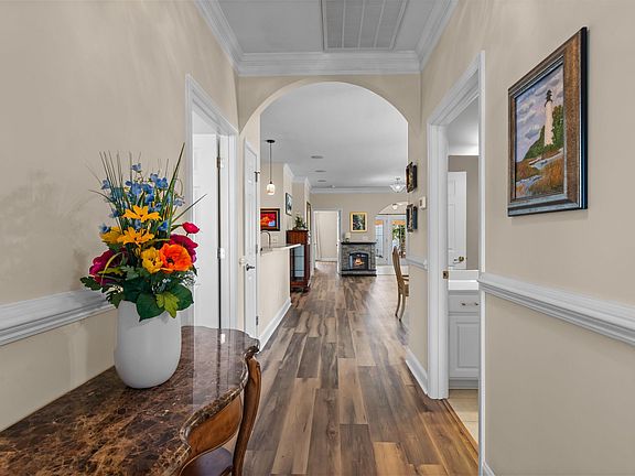 Welcome to this beautifully maintained 3-bedroom, 2-bathroom end unit townhome, located in the highly desirable Courtyard at Cascades. As you step through the foyer into the spacious main living area, you’ll be greeted by an abundance of natural light that fills the open floor plan. The elegant wood-like LVP flooring in the main living spaces complements the sleek tile in the wet rooms, offering both style and convenience. The kitchen is a standout feature with freshly stained cabinets, ample storage space, a large pantry, and a direct view of the living area, making it perfect for both everyday living and entertaining. The master suite boasts vaulted ceilings, a spacious walk-in closet, and a ceiling fan for added comfort. The en-suite bathroom offers an oversized walk-in shower, plus a vanity with plenty of room to expand. The two additional bedrooms share a full guest bathroom with a shower/bathtub combination and a vanity sink. The laundry room includes upper cabinets for storage, a washer/dryer, and pull-down attic access for additional storage, ideal for larger items like holiday decor. Just off the main living area, you’ll find a large, private Carolina Room, a perfect space to enjoy your morning coffee or relax in the evening. Step outside into your private backyard oasis, complete with gorgeous pavers and a retractable awning, allowing you to enjoy the space any time of day. A private walkway leads to the detached two-car garage, which offers convenient rear access for parking. The fenced-in backyard is perfect for grilling, entertaining, or simply unwinding in peace and privacy. This low-maintenance, courtyard-style backyard offers a serene environment to relax and enjoy quiet moments. The Courtyard at Cascades community provides residents with access to a pool and clubhouse, and is ideally located near Market Commons, Lowe's Food, Target, Lowe’s, Starbucks, and much more. Plus, it’s just a short drive to the beach. Whether you're looking for a primary home or a second home near the beach, this gem won’t last long. Don’t wait, schedule your private showing today!