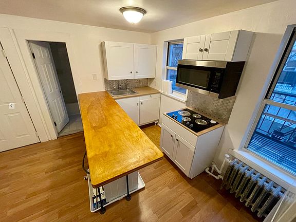 This is a bright 2 bedroom, top floor apartment in midtown Hoboken, 2 blocks from Stevens Institute. Newly renovated. The renovations including installing new refrigerator, dishwasher, combo washer/dryer, gas cooktop, microwave/vent, and all new kitchen cabinets, as well as for the bathroom. Tenant pays for electricity for the unit only. No fee, as this apt is for rent by owner. Note there is a credit check requirement, which costs $40, but you can keep your report. The rent includes hot water (the building has two 40 gallon hot water heaters), hydronic heating (radiators), water, sewerage, and garbage.