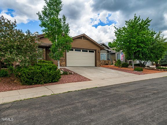 Do not miss this rare opportunity to own one of the very few 3 bedroom homes in the desirable community of Highland Meadows Place. These do not come around often! Situated on a fully landscaped lot, within walking distance of Elephant Rocks public golf course and less than a 5 minute drive to downtown Williams, this location can't be beat. The home features an open concept with vaulted ceilings, a spacious living area and gas fireplace, a roomy kitchen with a breakfast bar and a split floorplan. The primary suite features an ensuite bathroom with a soaking tub, walk in shower and large closet. Two oversized guest rooms provide plenty of room to host family and friends. The covered patio and synthetic grass backyard offer the perfect space to take in the mountain air. Spacious storage shed