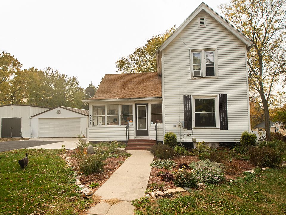 3 bedroom, 1 bath and a 2 car detached garage. Enclosed front porch, some newer windows and flooring. Double lot with large fenced back yard. New gas water heater in Nov 2017, new plywood, some rafters & roof over bathroom & back porch Nov 2017 Bathroom totally gutted & all new plumbing, insulation & fixtures spring 2018. Fresh paint interior Dec 2017. Property sold AS IS and Price is FIRM