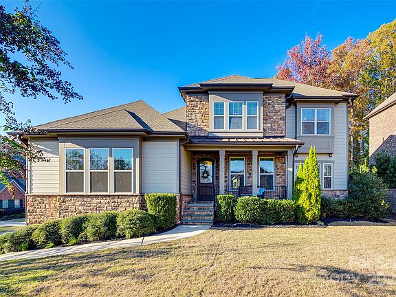 Nestled in a wooded backdrop in the sought after community of Eppington South, this stunning home will leave you nothing short of impressed! A relaxing front porch greets you as you make your way in on gleaming wood floors that run throughout the downstairs, & upfront a study w/ french doors. The showstopper great room is grounded by a stacked stone fireplace flanked by built-ins, & has tons of natural light. The chef's kitchen boasts an expansive island, gas cooktop w/ SS hood, double ovens, SS apron sink, cabinets to the ceiling, a pot filler, & more! The primary on main highlights views of the treed lot, & the massive bath has dual quartz vanities, soaking tub & walk in tiled shower, & a generous closet. Upstairs you'll find a large loft, as well as 3 bedrooms and 2 bathrooms (1 bath is ensuite). The backyard has a large covered back porch that pours onto a flagstone fire pit area and fenced yard with tons of privacy. W/ low SC taxes & easy access to shopping & I77, welcome home!