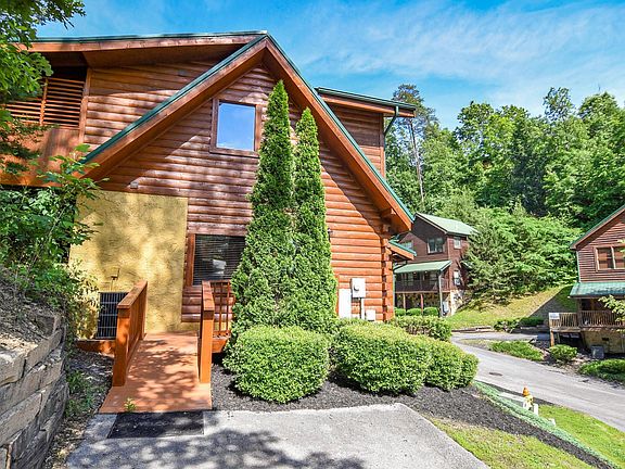 Handicap accessible! Stunning 2 bedroom 2 bath log cabin that has been beautifully remodeled. It has new steps, paint and stain on the outside and new carpet and decor on the inside. All furniture and mattresses are new. Kitchen features a beautiful farm sink and granite counter tops.Cathedral ceilings, wood floors, stacked stone fireplace, jacuzzi tub, a new pool table in the game room, hot tub on the covered private back deck and so much more! The cabin is located in Arrowhead Resort just a mile from the Pigeon Forge Parkway. Dollywood Cabins (rental company) has projected excellent rental income potential of 55k per year.