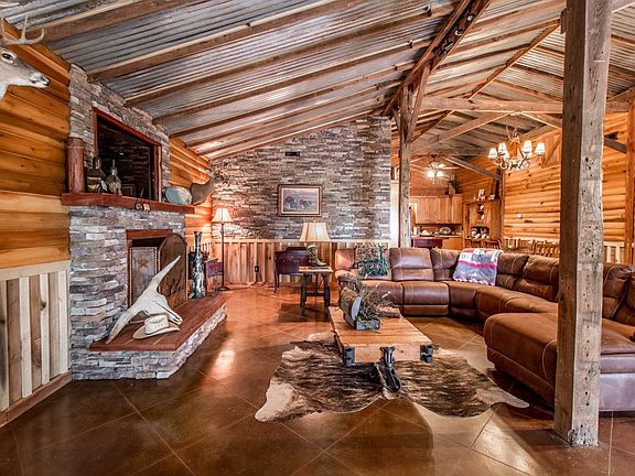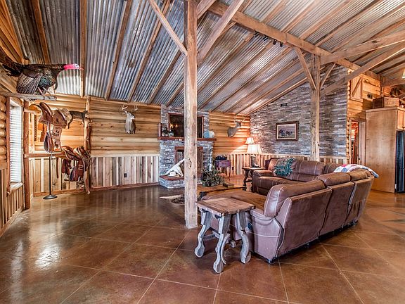 Looking for privacy, then come home to this rustic barn style home situated on 20 acres in Lexington. Home features gorgeous eat in kitchen with custom cabinetry, counter tops, stained concrete flooring and all appliances convey. Large living room features rustic wood finishes, custom stonework, ceilings and concrete flooring. Master Bedroom is spacious with beautiful woodwork and custom walls, ceilings and double closets. Private Master bath with farm style sink, beautiful cabinetry, walk in tile shower, and custom whirlpool tub. Additional bedroom is also spacious and complete with custom finishes. Outside features beautiful wood and custom stone work, three car attached carport, covered breezeway/patio leading to 40 x 72 barn fully set up to accommodate a working farm. Property is completely fenced with custom steel and cable fencing, has a pond and an a additional 3 bedroom, 2 bath home, would be great for a rental property. This home is a must see, call today for your private tour