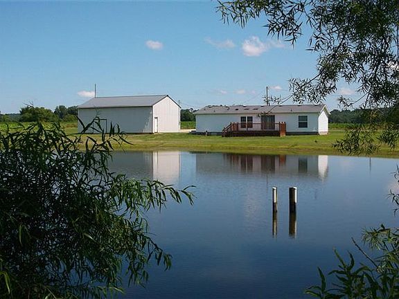 Wow! what a location! 5.1 Private acre with 1/2 ac. stocked pond. Great fishing! Huge 60x40 barn. Immaculate 3 bdr. 2ba home. All bdr have walk-in closets. Master with att. bath. Large eat-in kitchen with island. Walk out onto deck overlooking pond.