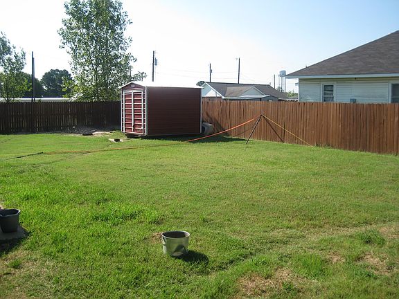Custom built 3 bedroom, 2 bath brick home. Beautiful vaulted ceilings with arched entry to dining room. Inside city limits with city utilities, close to TDCJ & RSH. Master bath has jacuzzi tub and separate shower with double vanity sinks and walk-in closet. Tile and laminate flooring throughout and tile countertops in kitchen and both bathrooms. Privacy fenced, roomy back yard give kids plenty of room to play. Corner lot with concrete drive and large 2 car attached garage and storage building in back yard.
