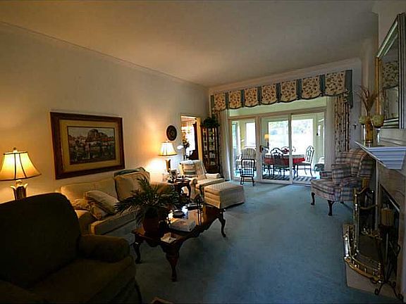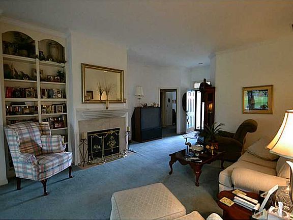 Charming solid brick ranch with an excellent floor plan in beautiful Foxmoor. Spacious great room w/10ft ceilings and crown mldg, built in bookshelves and fpl w/gas logs. Well lit kitchen offers plentiful cabinet space w/pantry & nearby laundry room too. Connected dining area opens to the central sunroom. Lg concrete patio offers a lovely view + a retractable sun awning. MBR has MBA w/roomy wic, dbl sink vanity. Den/Library has great built in cabinets. Large finished 2 car garage.