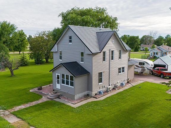 Charming 5 bedroom 2 bathroom two story home nestled on 3 city lots with room to add more finished square feet and your personal touch! Spacious kitchen with pantry, large dining area with slider door & built in blinds to the deck, covered front porch and large mudroom area. 4 bedrooms on the same level. Wood burning and corn burning stoves, new mini split system, newer roof, siding and water heater. Deep driveway, double and single garages, established garden area and mature trees all situated on a generous sized corner lot add more value to this one of a kind gem. Plant some roots of your own in the quiet community of Spencer, SD and make this your home sweet home!