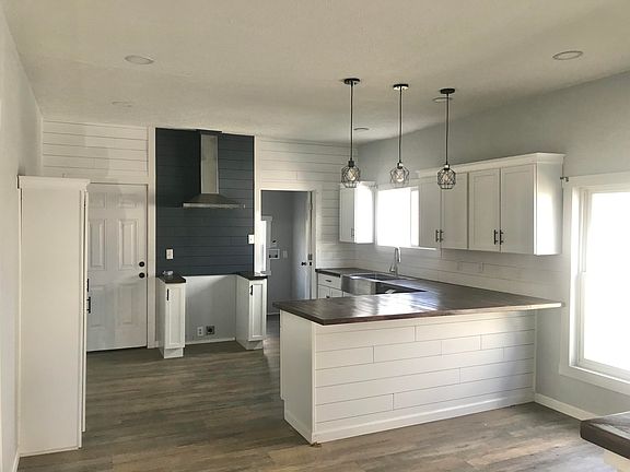 Step inside this beautifully remodeled 3-bedroom, 2-bath home where modern updates meet rustic charm. The inviting open floor plan showcases tall ceilings and luxury vinyl flooring and shiplap wall accents, creating a seamless flow from room to room. A striking two-sided decorative fireplace connects the living room, dining area, and kitchen, offering warmth and character at the heart of the home. The kitchen is a true showpiece, featuring new white cabinetry, a breakfast bar, and rustic wood countertops—the perfect blend of style and function. Just off the kitchen, you'll find a convenient laundry area for everyday ease. The primary suite boasts a private bath and a stylish barn door, with an additional guest bedroom is located on the main floor. Upstairs, a spacious third bedroom offers endless possibilities—large enough to remain open or easily divided into two rooms for added flexibility. Recent updates include a roof only 4 years old and modern vinyl windows, ensuring peace of mind and energy efficiency. Outdoor living is equally inviting with a Covered front porch, back deck, fenced backyard, private driveway, and the bonus of a partial unfinished basement—ideal for storage or future expansion. This home is truly move-in ready, combining charm, comfort, and thoughtful updates. Don't miss the chance to make it yours today!