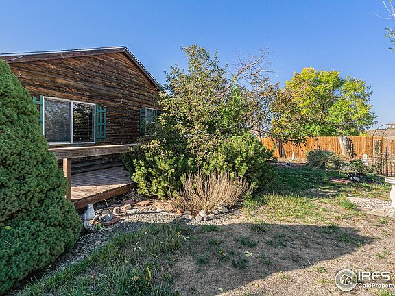Welcome to this unique log home featuring 4 bedrooms, 2 bathrooms and a 2 car detached garage. This large lot with mature landscaping includes several fruit trees, a grand garden and alley access with lots of room for parking and your toys as there is NO HOA here! Light and bright eat-in kitchen with hardwood floors and stainless steel appliances. Great built-in shelves in the office/study and living room. Check out the beautiful sunroom to enjoy the warmth from the south all year round. Plenty of storage in the large laundry room. The furnace and A/C were installed in 2016, water heater in 2014 and newer double pane windows. Additional features include no maintenance front composite deck, programmable central modern touch screen for A/C & heat, smart smoke detectors, wired for backup generator and the garage has built-in working benches and 220v. This home has close access to I-76 for an easy commute to Denver, Brighton and Greeley.