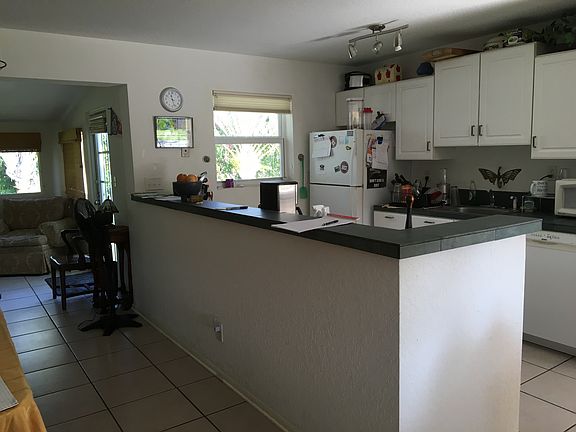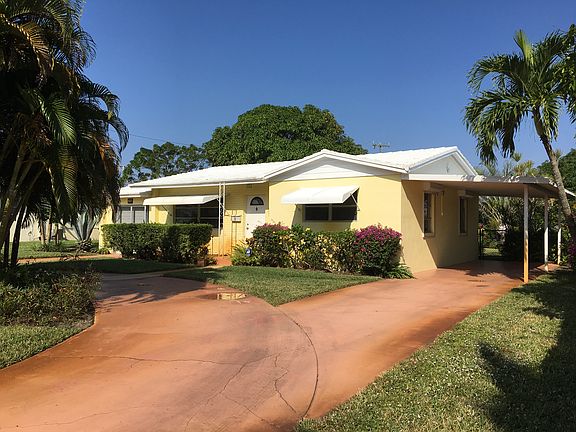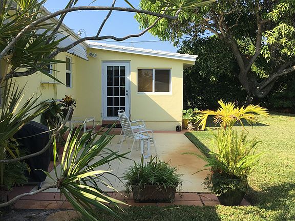 Old Florida style ranch with a bungalow charm, which was built in 1956 of hurricane strenght CBS. Later a Sun Room was added and light fills the space that opens to a secluded patio surrounded in lush, mature hedges, palms and fruitful mango tree. The north seated backyard is fenced and perfect for pets. A rear easment maintained by city provides a nice distance from the rear neighbors adding to the quiet nature of the neighborhood. On one side is a carport proving cover for your vehicle, boat or motor home, and fence, with landscaped hedge and palms creating privacy and shade. The opposite side is the single car garage with French screen doors allowing you to leave the main door up for air flow while you tinker inside on projects. A full shower bath inside the garage is convenient for cleaning up after coming home from the beach just minutes away. Or after taking your boat out at the marina a mile from home on the intracoastal. Five year old washer and dryer make up the laundry area along with a deep sink for household projects. In front is a porch with privacy hedge and circle drive with flanking drives to carport and garage. 20 foot palms stretch across the front creating shade and privacy, and the wide streets and sidewalks invite open space for neighbors to walk and travel. Riding a bike to the park over looking the intercoastal is a favorite exercise for my family. Or I can ride downtown to post office, coffee shop, grocery or restaurant. The interior was remodeled in 2005 creating an open floor plan for kitchen, dining and family activity. Tile floors were added at that time throughout the house. Paddle fans and multiple windows with custom coverings enable the breezes off the ocean to flow through the home. And during season no a/c (2 years) is necessary saving hundreds of dollars in electricity. The full bath accompanies two bedrooms on the east side of the house and was also remodeled in 2005. Living Room 12 x 18, Kitchen 9 x 12, Dining Room 7 x 11, Florida Room 11 x 19 (could be used as 3rd bedroom), Master 11 x 13, Bedroom 2 10 x13.