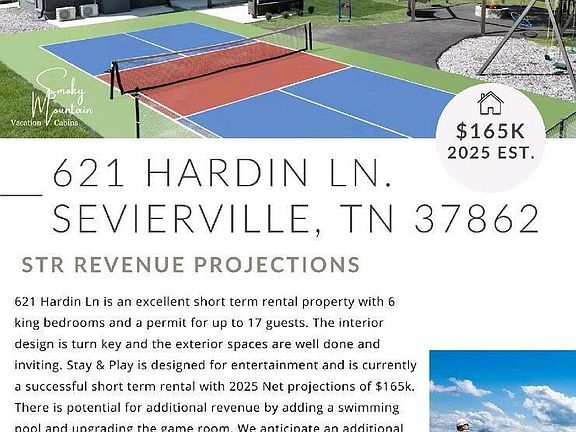 Welcome to Stay and Play!! Embrace the outdoors with the private pickleball court, dining tower with breathtaking mountain vistas, hot tub, firepit, hammocks, swings, and a dedicated play area for children. Inside ''Stay and Play'' has been meticulously renovated and improved from top to bottom! Endless amenities. **RENTAL INCOME PROJECTIONS UPWARDS of $180K, making it an exceptional investment opportunity.** Indulge in the extraordinary in this meticulously remodeled masterpiece boasting vaulted wood ceilings and six king-size bedrooms. Modern en suite bathrooms with oversized showers and a free-standing tub. The Gourmet Kitchen with coffee bar, double dishwashers and fantastic island flows seamlessly into a spacious living room and open dining area. Every room beckons you outdoors through glass doors leading to the extended upper deck or lower patio. Entertain effortlessly in the lower-level theater room, complete with a wet bar and refrigerator. The second recreation room offers ample space for a pool table or more activities. Unparalleled safety is ensured by the whole-house commercial-grade fire suppression system. Schedule a viewing today to experience this fully furnished dream home with endless amenities. This home comes with a Short term rental permit in place for 17 people, just 5 minutes from the parkway, no HOA!