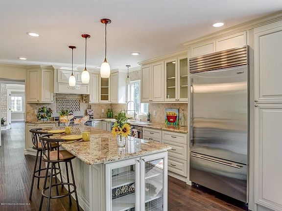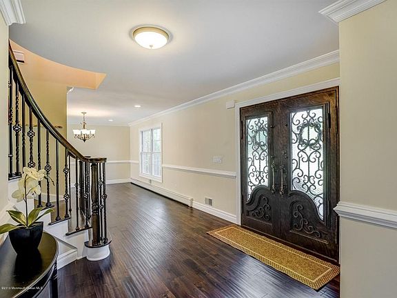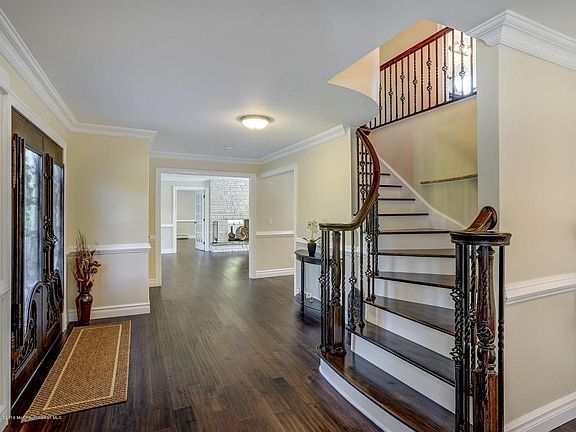 Stunningly upgraded home picturesquely setback on a 1 acre lot. Eloquent brick front colonial through the double entry door with decorative glass and your breath will be taken away with the open layout, spacious room sizes and tasteful high end upgrades throughout the home! Features include Arcadia walnut hardwood flooring, crown and chair rail molding, upgraded light fixtures and neutral paint colors. Huge chef's dream kitchen includes DCS oven and dishwasher, Sub-Zero refrigerator, granite counter tops, designer cabinets, center island and butlers serving area. Spacious living room and family room separated by a two-sided brick fireplace. Formal dining room with crown and chair molding. 1st floor bedroom perfect for in-laws.