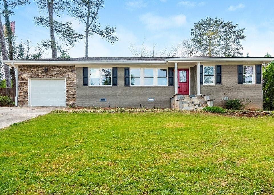 Prepare to be captivated by this beautifully modernized brick ranch, boasting an expansive open floor layout perfect for hosting gatherings with ease. This home offers an abundance of living space, adorned with an array of upscale features such as sleek recessed lighting, an efficient tankless water heater, an immersive indoor/outdoor speaker system, and elegant travertine tile alongside rich hardwood floors throughout. Bask in the warmth of the sun-drenched living room, which seamlessly transitions into a formal dining area and then into a spacious kitchen equipped with granite countertops and a breakfast bar, all while offering views of a serene backyard haven. This outdoor paradise features an extensive rear patio with a sheltered bar/kitchenette, ideal for alfresco dining and entertainment. The remodeled bathroom is a haven of relaxation, with its distinct tile shower and chic, contemporary soaking tub. Additionally, the property includes a sizable, separate office space. Located in the peaceful Dunaire neighborhood, this home is a concealed treasure, situated merely moments away from the vibrant heart of downtown Decatur.