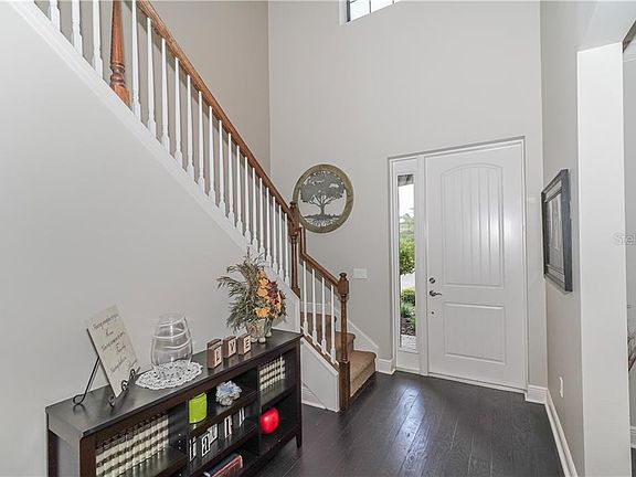 - Interior Features: Ceiling Fans(s), High Ceiling(s), Split Bedroom, Crown Molding, Walk-In Closet(s), Open Floorplan, Solid Surface Counters, Solid Wood Cabinets, Eating Space In Kitchen, Kitchen/Family Room Combo, In Wall Pest System