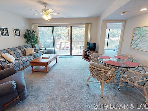 Private, quiet waterfront unit only one level down from parking w/your own assigned space, just a few steps into the door! Never on rental, this well maintained turn-key condo is super clean & features an open floor plan, kitchen w/breakfast bar, private waterfront deck off of living room, & spacious master suite w/oversized windows. Super private quiet location within the complex, this unit is tucked on the end of Building 6 just a FEW STEPS to one of the large pools - great for kids/families! GREAT LOCATION in the center of Osage Beach just minutes from shopping, dining, & entertainment by car or boat makes for a great potential rental investment too. Recently updated carefree kitchen flooring and new refrigerator. Just minutes by boat to popular destinations such as Backwater Jack's, Dog Days, & Redhead. Complex under new management & offers 3 saltwater pools, 2 are heated,tennis court,picnic & playground areas & clubhouse. Package includes boat slip w/hoist, & PWC slip w/drive on!