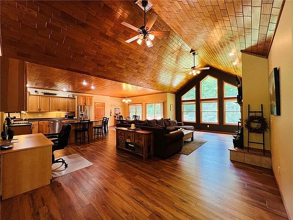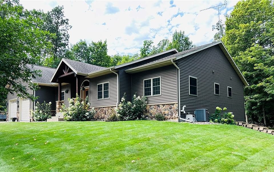 "Discover this custom-built, one-owner home in a highly desirable Barron location within walking distance to the High School, Barron Area Community Center and Hospital! Built in 2009, this stunning home offers over 4,300 sq. ft. of finished living space, nestled on a double lot surrounded by trees for ultimate privacy. The main level features a sprawling open-concept living area with vaulted wood ceilings, a cozy gas fireplace, and a seamless flow into the kitchen and dining area—perfect for entertaining. A spacious main-floor laundry room with built-in cabinets adds convenience. The lower level has 9' ceilings and it is an entertainer's dream with a massive family room, rec room, bar area, plus a 4th bedroom and bath. Enjoy the attached 1,000+ sq. ft. garage with a rear overhead door for easy backyard access. Just a short walk to local amenities!"