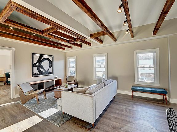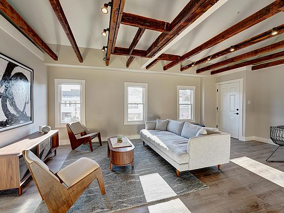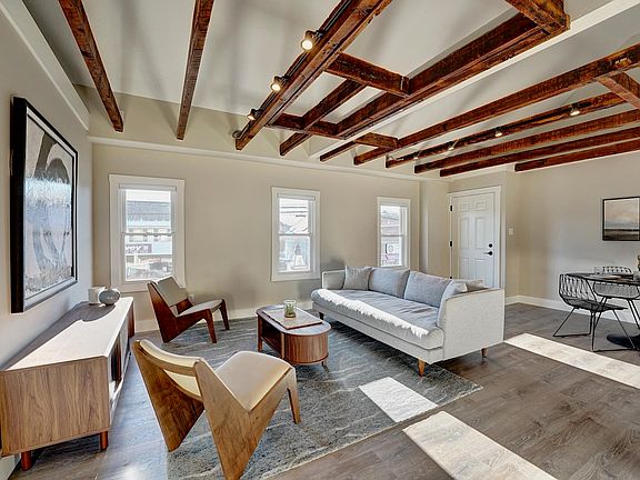 Welcome home to your top-floor, end-unit condo that’s been fully renovated to perfection. Nestled in the heart of Portsmouth's lively West End, this 2-bedroom, 1-bath gem seamlessly blends modern style with timeless appeal. Inside, you’ll find stunning exposed post-and-beam rafters and soaring ceilings, lending character and warmth to the space. The flexible loft area adds versatility, making it ideal for a home office, reading nook, or creative studio. The open-concept design ensures seamless flow, with a spacious living area that’s perfect for hosting friends or unwinding after a busy day. Sunlight streams through large windows, bouncing off the fresh grey walls and crisp white trim to create a bright, inviting atmosphere. The kitchen shines with sleek stainless steel Hisense appliances, soft-close cabinetry, and elegant Glacier Bay and Kohler fixtures—all thoughtfully chosen for both style and functionality. Year-round comfort is a breeze with energy-efficient Mitsubishi mini splits for heating and cooling. Convenience abounds with in-unit laundry, two off-street parking spaces, and low condo fees that cover water, sewer, landscaping, and snow removal. Steps from cafés, shops, and more, this condo offers the ideal blend of urban ease and local charm. With Downtown Portsmouth and Kittery Foreside minutes away, move in, relax, and enjoy the best of Seacoast living—everything has been done for you!