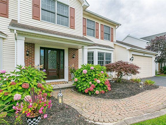 Don't miss this rare opportunity! Beautifully updated, 5 bed, 3 full bath & over 2,800 SqFt Alaimo built home, situated in the desirable Greece Arcadia School District (PaddyHill Elementary)! This home offers tons of upgrades! A cozy front porch, statement making front door w/ sidelights & gleaming hardwood floors welcome you. The remodeled kitchen '22 boasts quartz counters, marble tile backsplash, updated cabinets, SS appliances & a large island. Open concept to the eat-in space & family room w/ gas fireplace. Pocket doors lead you to the formal living room & hardwoods continue into the formal dining room. Park-like backyard w/ a newly renovated 3 tier deck overlooking the lawn & new pool '20 w/ wedding cake stairs. Perfect for entertaining! A main floor bed, renovated full bath '23 w/ new vanity, backsplash & mirror & the updated laundry '23 wrap up the 1st floor! Main floor living opportunity!!! 4 beds upstairs incl. the master suite w/ walk-in closet & huge updated en suite w/ new double vanity, vinyl plank flooring & mirror '21. The 2nd full bath was also updated in '21.Even more space in the walk out 12 course basement. Invisible fence & RV plug. Offers due 11/6 11AM