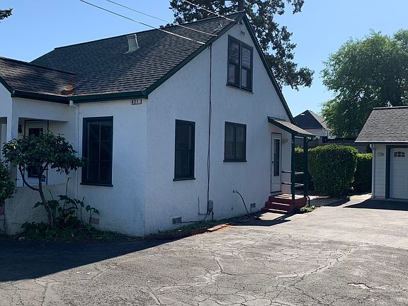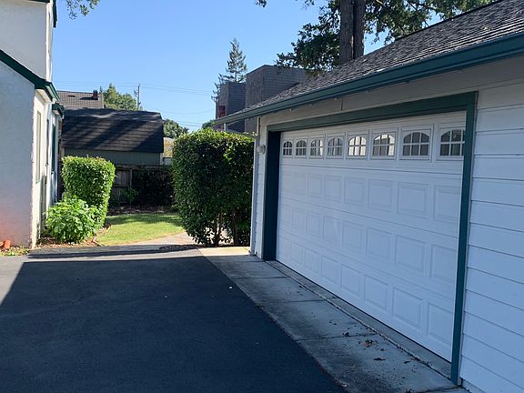 Beautiful bungalow in back of large property in very desirable neighborhood; lower SRJC and just outside of downtown. Rustic feel with modern amenities: white pine floors throughout living room and main bedroom downstairs, and fun & funky tile in main bathroom. Great light yet completely private. 2 upper floor rooms with cedar plank throughout and own half bath. Freshly painted walls and ceilings throughout; just-installed 2 ton HVAC system. Complete kitchen with stove, microwave, fridge and dishwasher; attached dining alcove with built in corner cupboard. Full washer & dryer Ample parking with private carport [fits 2-car] and large 2-car garage with extra storage. Private backyard with patio and surrounding trees provide serene space for cookouts or playing with kids; perfect for couple or small family. No smoking/vaping of any kind indoors or on property. Tenant pays water; electric; and Recology. Owner pays landscaping. Owner pays landscaping. Renter pays water; electric; and Recology [and other services desired]