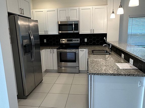 Spectacular New townhouse, 4 bedrooms, four bathrooms, patio, open floor, kitchen and bathroom white cabinets with granite countertops, community pool, basketball and sand volleyball courts, picnic pavillion, just minutes to Disney world and other atractions. Includes all appliances. Pets allowed with a pet fee. 12 month lease, monthly rent includes landscape and trash. Tenant is responsible for utilities. The townhouse has one car garage. Tenant can park the additional car in the driveway. Tenants are responsible for utilities payment