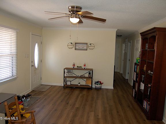 Move in ready spacious 3 bedroom/2 bath home in a large fenced yard. The roof was new in 2020, the HVAC system in 2022. The home was originally built in 1973 however it was completely remodeled in 1995, thus changing the effective age. The crawl space has been encapsulated, there is limited attic access. The house has LVP flooring, ceiling fans and crown moulding in all rooms. The L shaped living room is very comfortable with space for a dining area, office area, kids play area, etc... The nicely appointed kitchen provides ample storage, a huge eating area, nice granite counters and all appliances will convey. Adjacent to the kitchen is a bright sun-filled room which currently services as an office. This flexible space featuring a brick surround fireplace is for you to ''choose how to use''. Steps away from the kitchen is the ''storage''/pantry for the home. There are tile floors and plenty of room for shelving, vacuum, etc... The laundry is very spacious and has washer & dryer hookups, tile floor, a large newer water heater and tons of extra room for storage. Walk out of the laundry onto a newly laid square brick paver walkway to the side gate, detached garage and the backyard. The chain link fence surrounds the rear of the home with a 12'X15' concrete patio with a built-in brick fireplace/grill and even a firepit inside . Entry from the patio is available via the flex room.