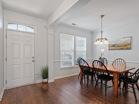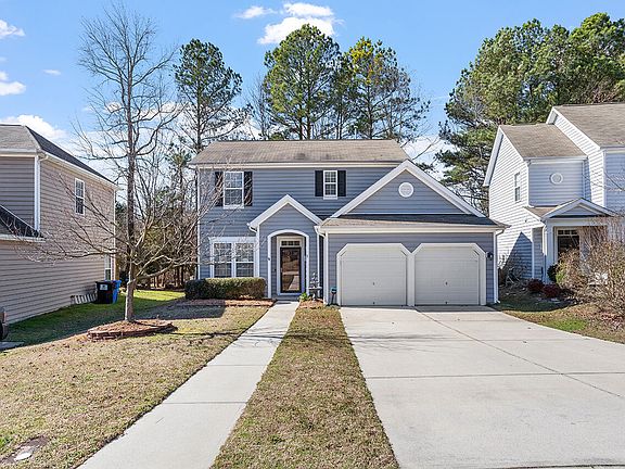 This inviting 3 bed/ 2.5 bath home is located in the Village at Rolesville and boasts over 1500 sq. ft of living space! Entering through the foyer, you are greeted by 9-foot ceilings and laminate wood flooring throughout the living area, providing a spacious and airy ambiance. The heart of the home is the open floorplan, which seamlessly combines the family room with a cozy gas fireplace with a statement mantle and a formal dining area perfect for entertaining guests. The eat-in kitchen is a chef's delight, equipped with a breakfast bar, updated granite countertops, a stainless steel sink, ample 42-inch cabinets, and a pantry. The luxurious primary suite is complete with a soaking tub, walk-in shower, dual sinks, and a spacious walk-in closet. Upstairs features a secondary suite with a full bath, a third bedroom, and a laundry closet. Additional features include 2 inch faux blinds, a Nest thermostat, and a 2-car garage with an insulated door and storage shelves. Step into your backyard oasis, featuring a patio and a shed nestled against a wooded treeline for added privacy! The community amenities are just a short distance away, including a clubhouse, pool, tennis court, playground, and volleyball court. Conveniently located less than 5 minutes from Rolesville's shopping and dining options, 30 min to Raleigh and 15 min to Wake Forest, this home is the perfect blend of comfort and convenience. Schedule your showing today!