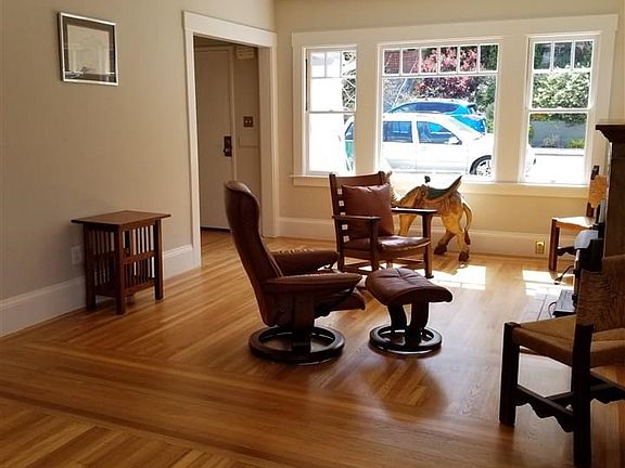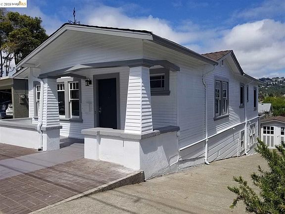 This comfortable 1922 home converted to a duplex by former owner. Downstairs unit converted into a master bdrm, removed kitchenette w/o permit. Lg.bath + bonus rm, downstairs. Upgrades incl: new kitch. cab, quartz counter,new stove,sink,disposal,lights. Central vac,built in stereo, wall insulation, refinished wd flrs., new paint, Detach garage used as wkshop. Top deck rebuilt w/o permits, hot tub, sewer lat compliant. Berkeley/El Cerrito hills from kitchen/deck. 3 cats also reside here.