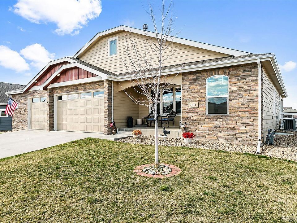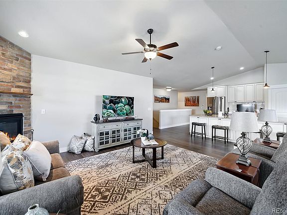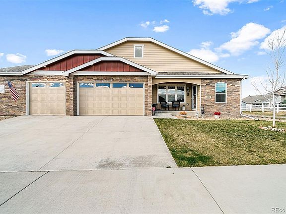 Welcome home to this inviting 3 bed, 4 bath, beautiful ranch-style home located in the active and growing community of Frederick, Colorado. Its open floor concept seamlessly connects the kitchen and living room, fostering a spacious and inviting atmosphere complete with a cozy fireplace. The functional kitchen is complete with beautiful granite countertops, a large and generously sized island, and stainless steel appliances including a gas cooktop for culinary enthusiasts. Bright en-suite primary bedroom offers double sinks and walk in closet. The oversized 1,100 sq ft garage offers ample space for vehicles, toys, and storage and can fit up to 4 vehicles. The upgraded and premium sized 0.21 acre lot provides plenty of space for outdoor play and enjoyment, in addition to the covered front and back patios. Backyard shed offers additional space for storage or gardening tools. Additionally, as a bonus - the drywalled basement has a 1/2 bath and already set up for your own workshop and craft areas, catering to hobbies or projects and adding versatility to the property. Overall, this home combines contemporary comforts with practical features for a comfortable lifestyle.